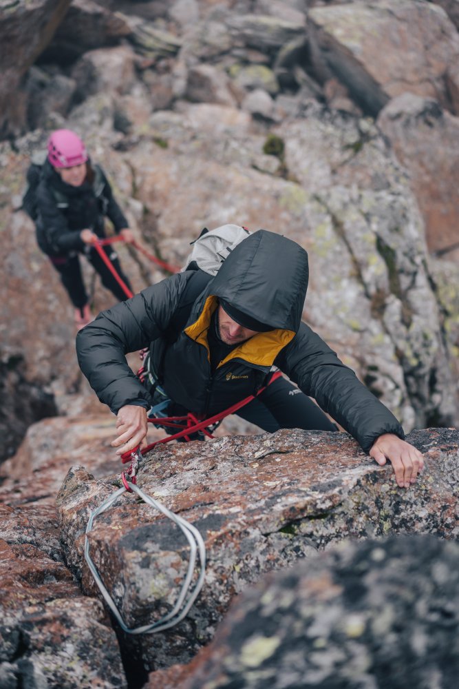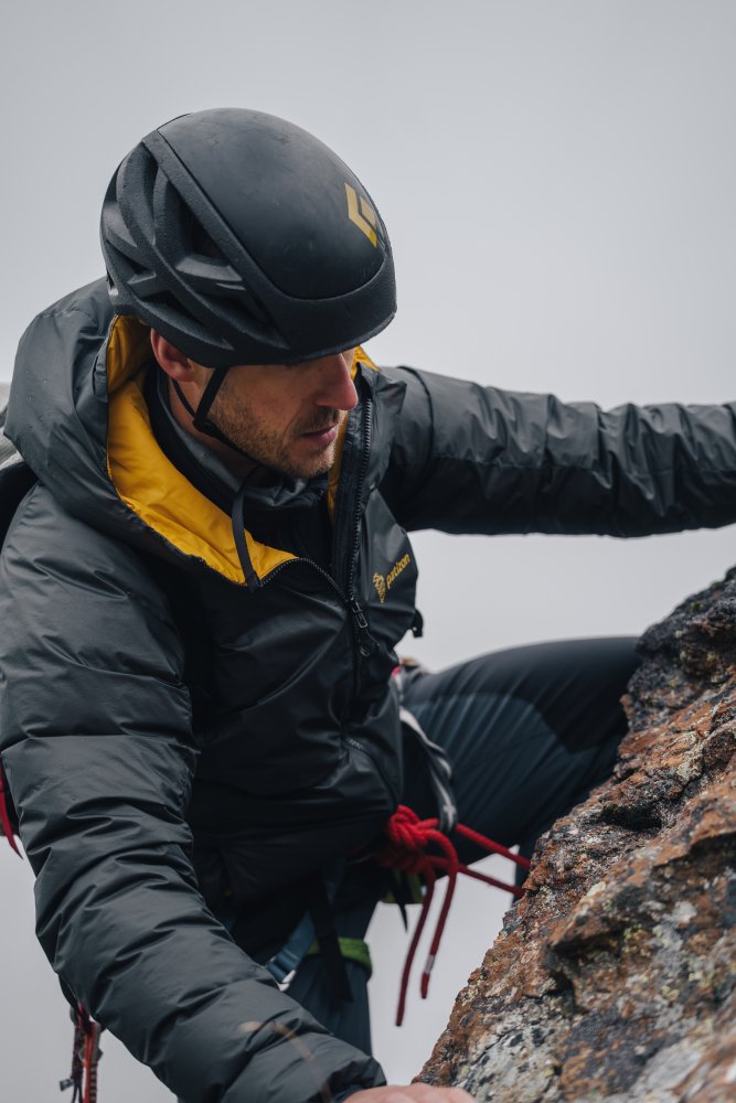 Eine einzigartige Daunenjacke, die nicht nur verschiedene Isolationsmaterialien, sondern auch zwei unterschiedliche Konstruktionsmethoden kombiniert. Im Kern befindet sich eine anatomisch geformte Daunenjacke, ergänzt durch mehrere Paneele aus synthetischer Isolierung, um einen perfekt anliegenden, funktionalen Schnitt zu erzielen. Über diese ultraleichte Daunenschicht wird eine nicht durchgesteppte Membranhülle gezogen, die die Wetterbeständigkeit der Jacke drastisch erhöht und gleichzeitig ein klareres, puristisches Design ermöglicht. Die Kapuze ist selbstverständlich helmkompatibel. Die ideale Jacke für anspruchsvolle Unternehmungen bei widrigen Bedingungen.