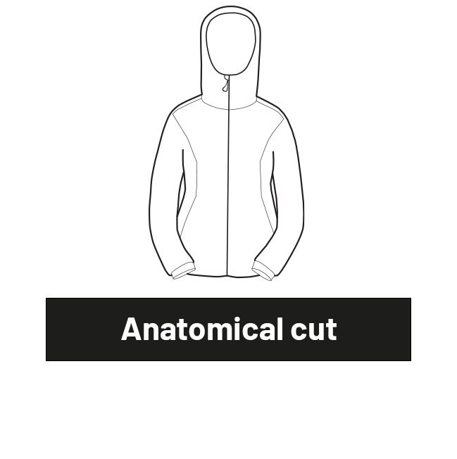 Die anatomisch geformten Ärmel enden in einem komfortablen elastischen Bündchen mit dynamisch geschnittenem Keil, der Wärmeverlust verhindert und gleichzeitig nicht beim Tragen von Handschuhen stört.