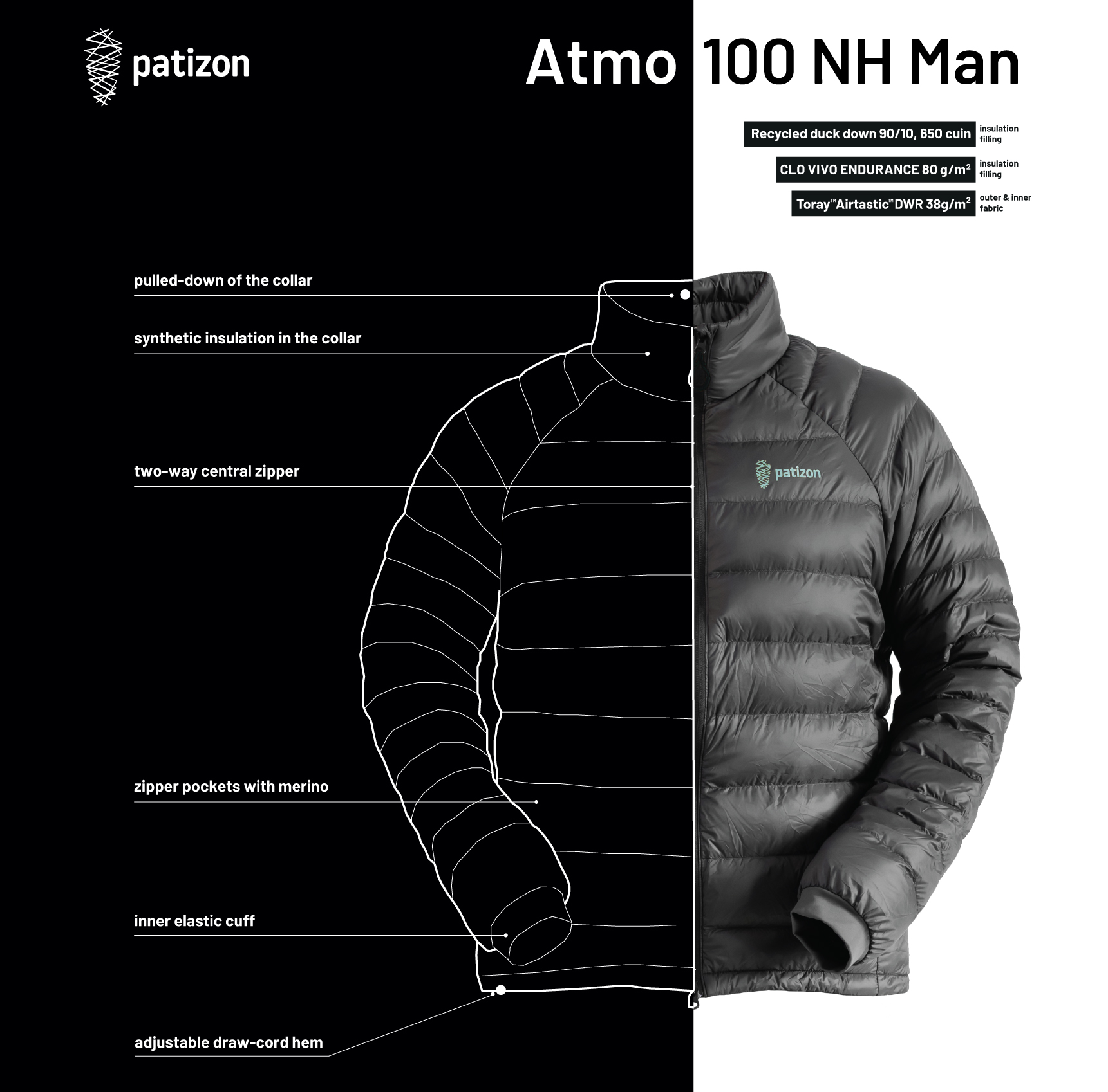 - Patizon Atmo 100 NH is entirely sewn from premium Toray™ Airtastic™ material with a DWR water repellent treatment, excellent breathability, and a very good balance between low weight and durability.