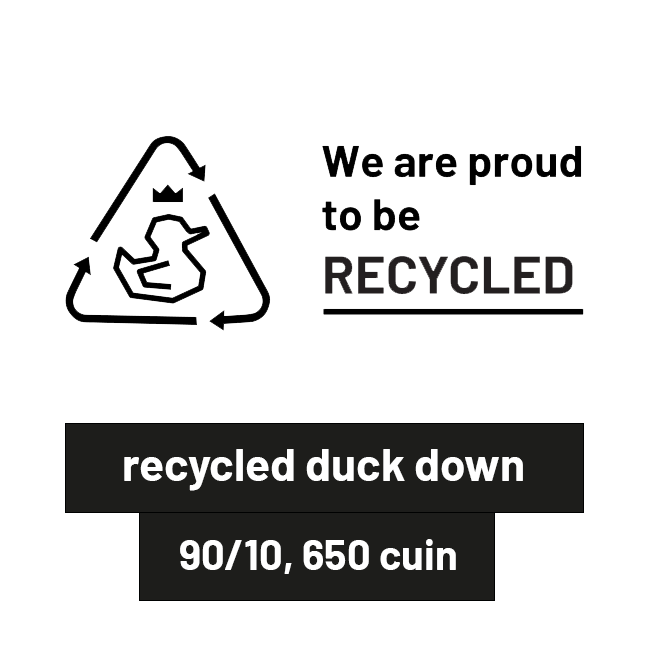 | INSULATION FILLING | Recycled European duck down 90/10, 650 cuin |
