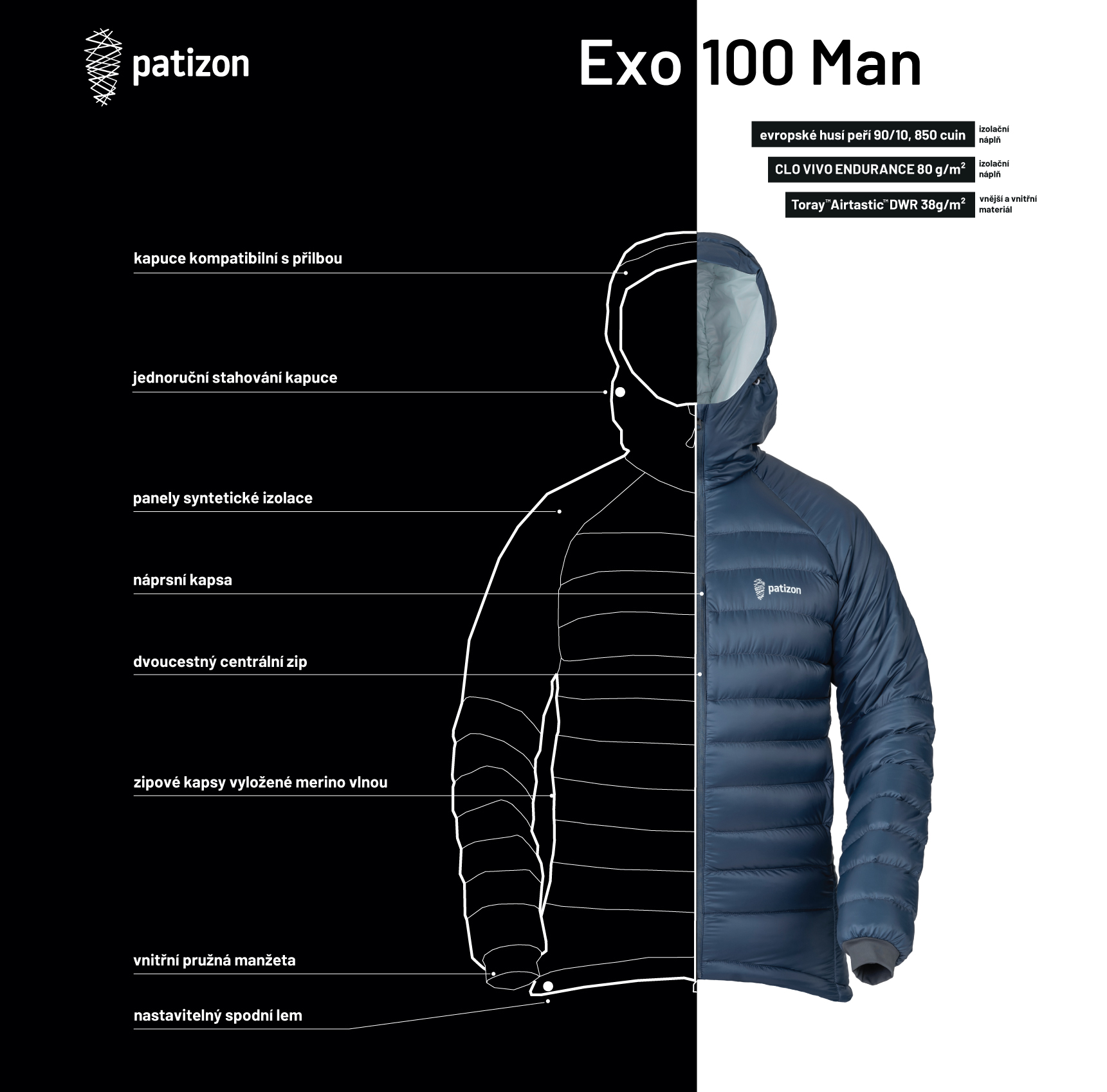 - Patizon Exo 100 využívá hybridní konstrukci, kdy na různých místech využívá různé typy izolačního materiálu: