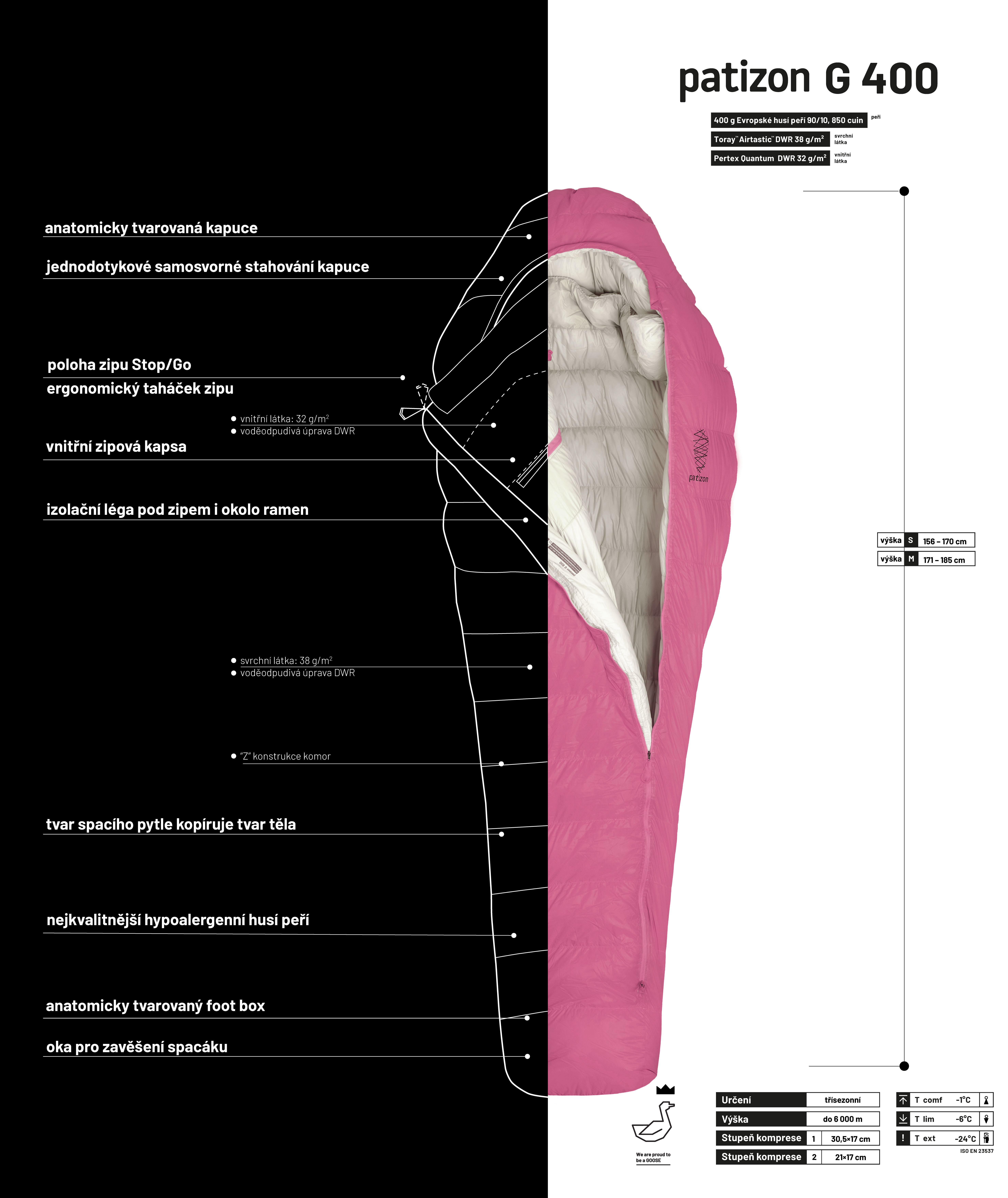 - Patizon G 400 Marvelous Edition plníme prémiovým evropským hypoalergenním husím peřím s plnivostí 850 cuin a certfikáty IDFL a RDS.