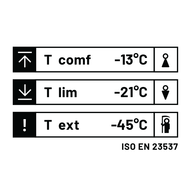 | TEPLOTY | -13°C, -21°C, -45°C (ISO EN 23537) |
